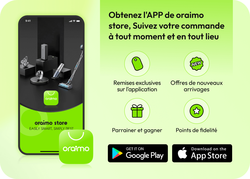 Téléchargez l’application oraimo store pour suivre votre commande en temps réel et rester informé des derniers prix des produits