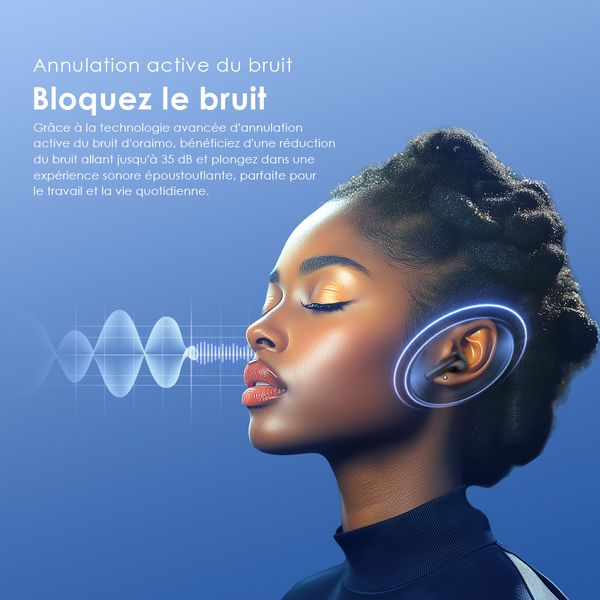 Grâce à la technologie avancée d'annulation active du bruit d'oraimo, vous pouvez bénéficier d'une réduction du bruit allant jusqu'à 30 dB et vous immerger dans une expérience sonore époustouflante, parfaite pour le travail comme pour la vie