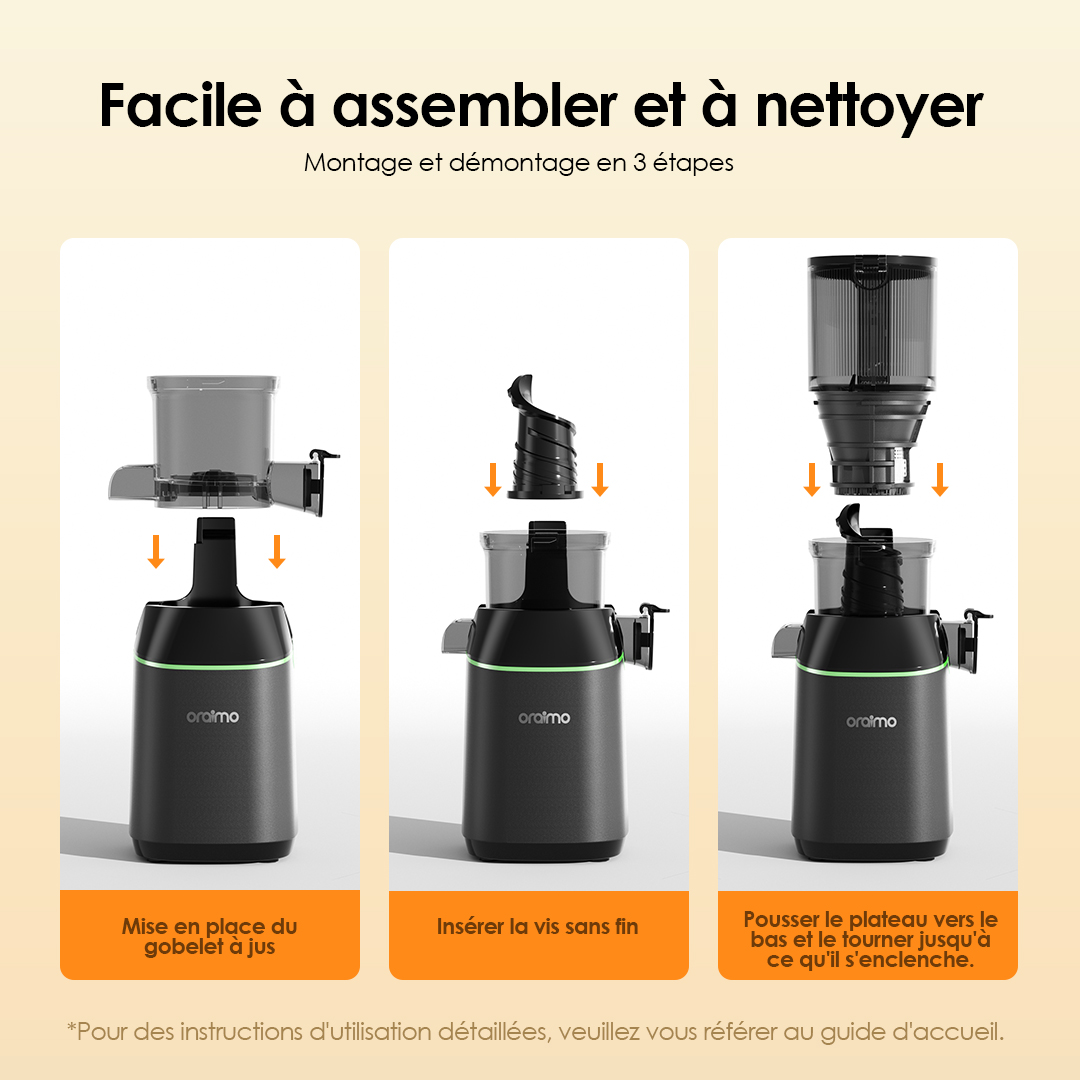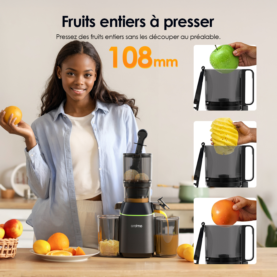 Alimente facilement les fruits entiers, extrait rapidement le jus frais et conserve un maximum de nutriments.