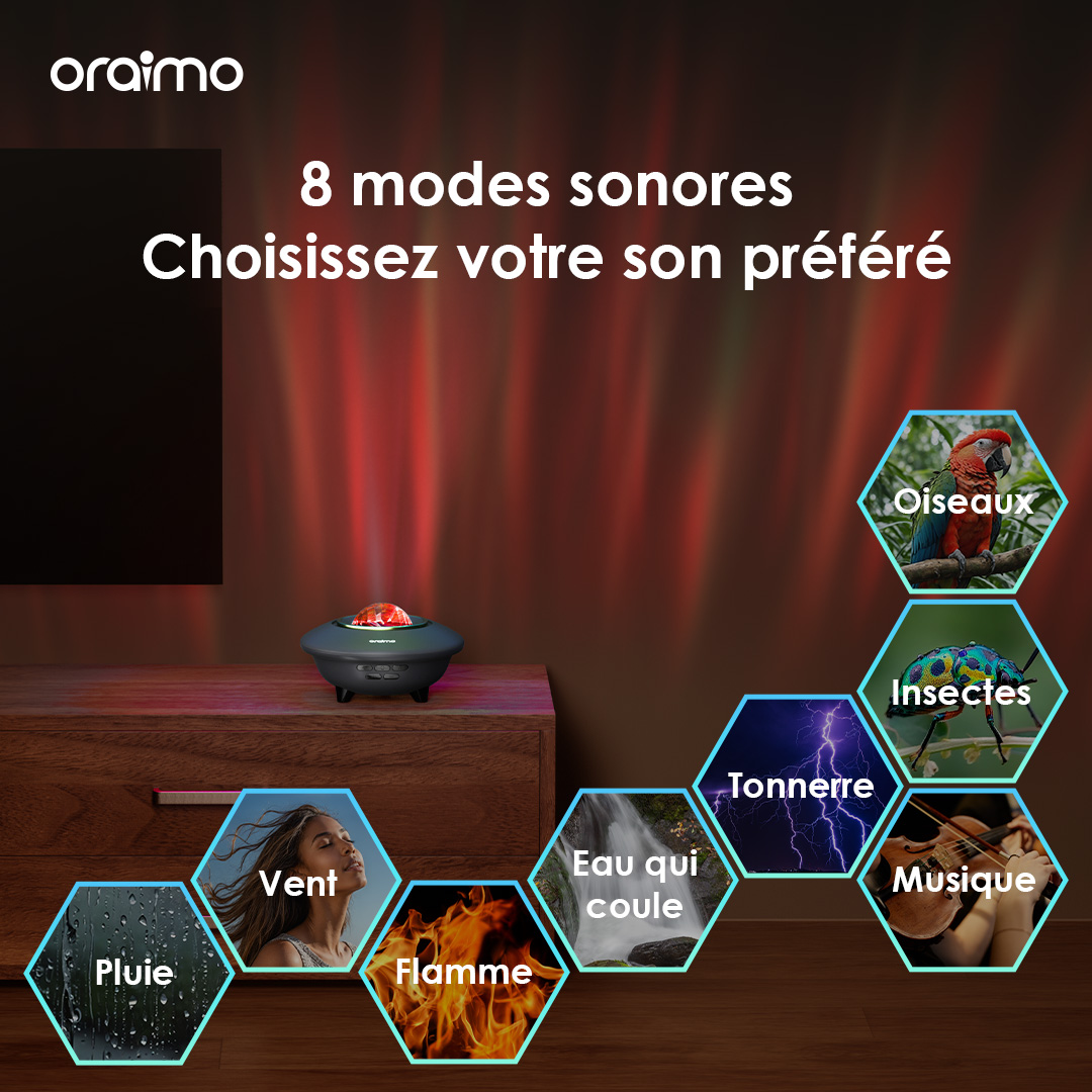 Avec 8 modes sonores différents, adaptez votre environnement selon vos besoins, que ce soit pour méditer, dormir ou travailler Ces sons apaisants aident à soulager le stress et à améliorer le sommeil pour tous les âges.
