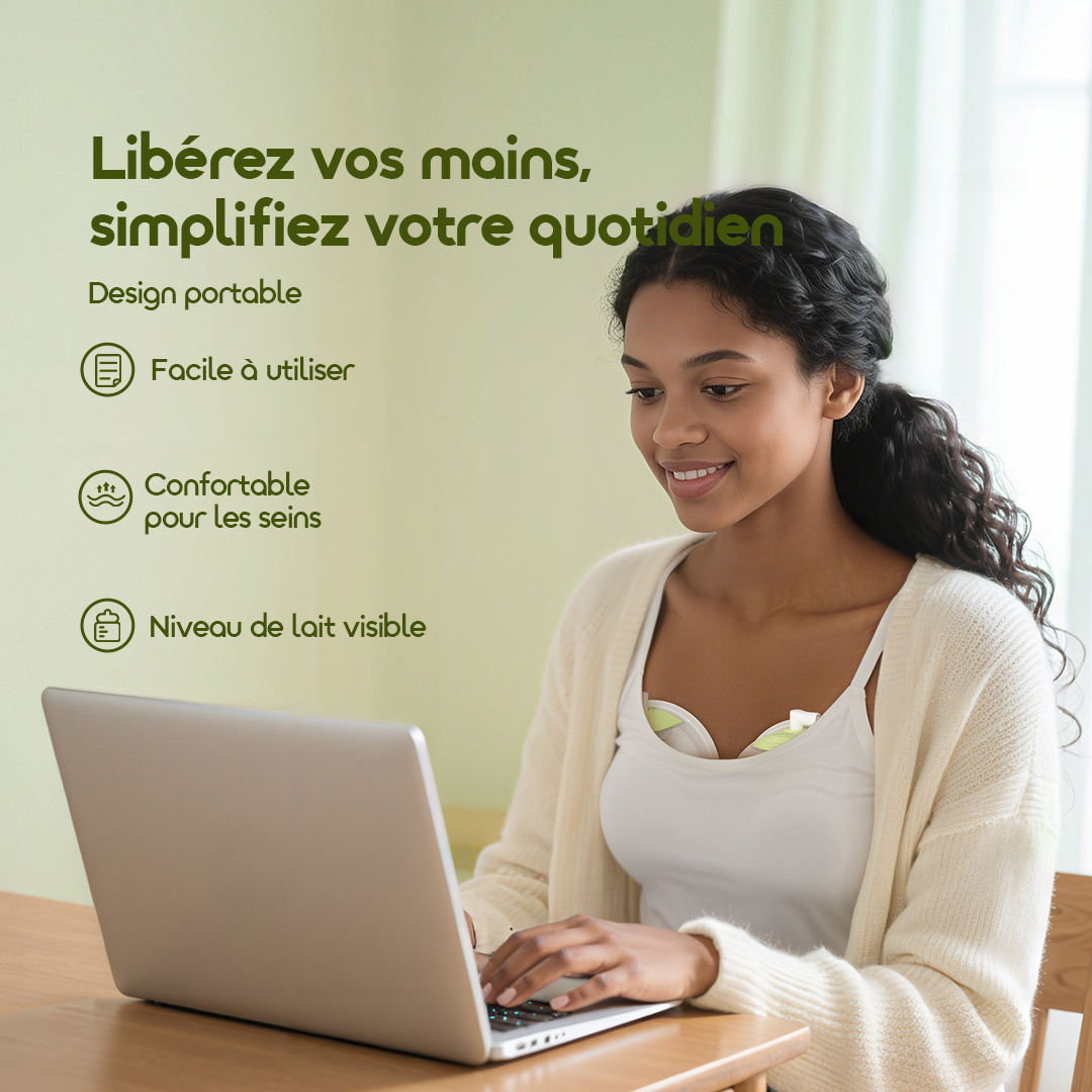 Aucune main nécessaire pour le maintenir, permettant aux mamans de gérer facilement les tâches quotidiennes ou simplement de se détendre pendant l'expression, tout en gagnant du temps et en économisant de l'énergie.