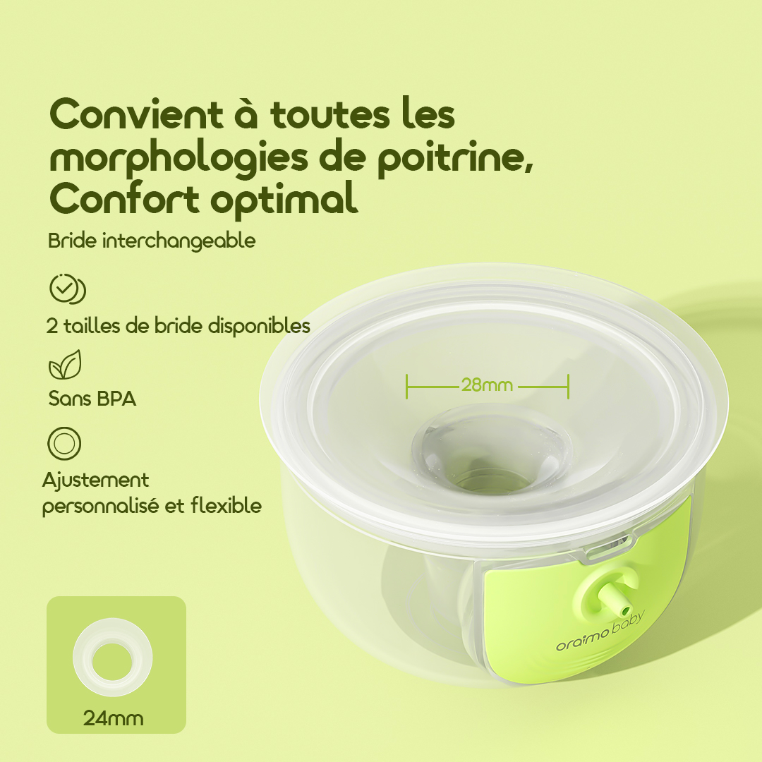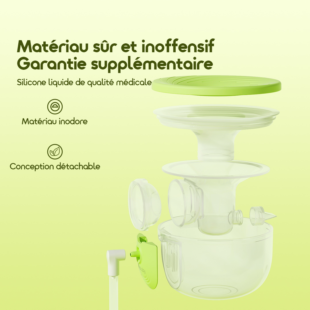Fournit une couverture complète à 360° et une sensation douce, évitant la friction, la douleur et les rougeurs pendant l’expression.