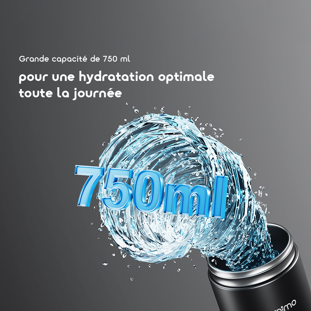 Restez hydraté sans avoir besoin de recharges constantes. La grande capacité de 750ml de ThermoGo remplace les bouteilles en plastique à usage unique, soutenant un mode de vie plus durable et respectueux de l'environnement. Idéal pour le travail, les entraînements ou les aventures en plein air—plus d'eau, moins de tracas.
