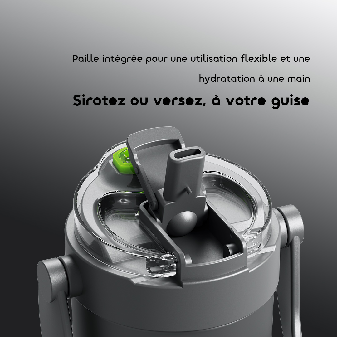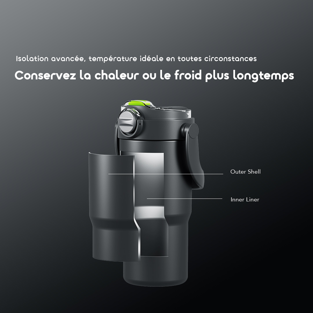 Avec une paille pliable intégrée, ThermoGo vous permet de siroter facilement d'une seule main—sans incliner, sans déversements.