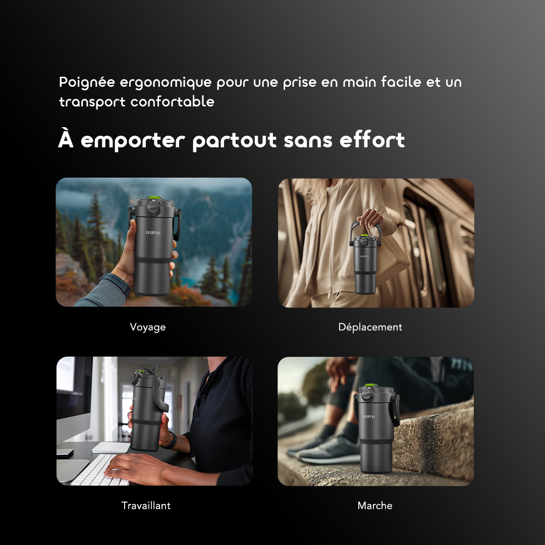 Grâce à l'isolation sous vide à double paroi, ThermoGo maintient la température idéale de votre boisson pendant des heures. Que ce soit un café chaud le matin ou une boisson glacée rafraîchissante, savourez chaque gorgée comme vous l'aimez, où que votre journée vous mène.