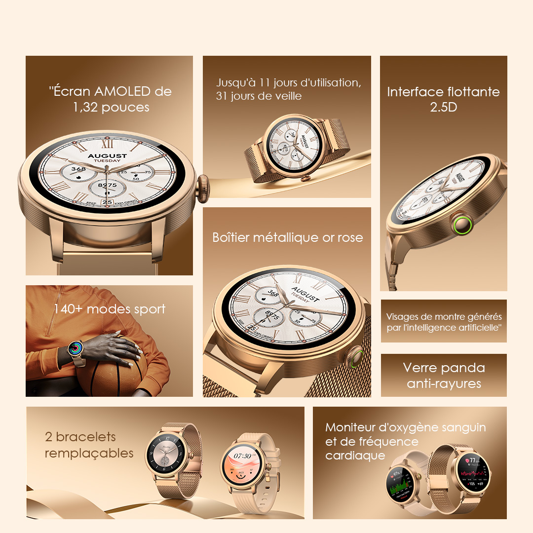 Le boîtier métallique rose gold et le cadre central en acier inoxydable brillent en parfaite harmonie, exprimant votre puissance et votre style à chaque mouvement.
