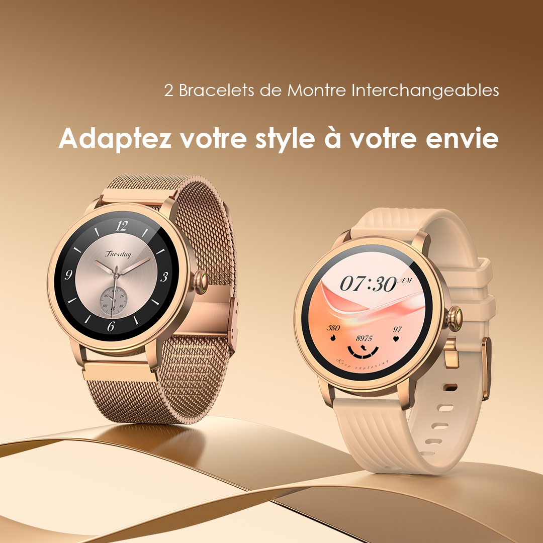 Le bracelet en acier milanais et le bracelet en silicone rose peuvent être facilement interchangeables, vous permettant d'adapter votre montre à votre humeur et à votre style sans effort.