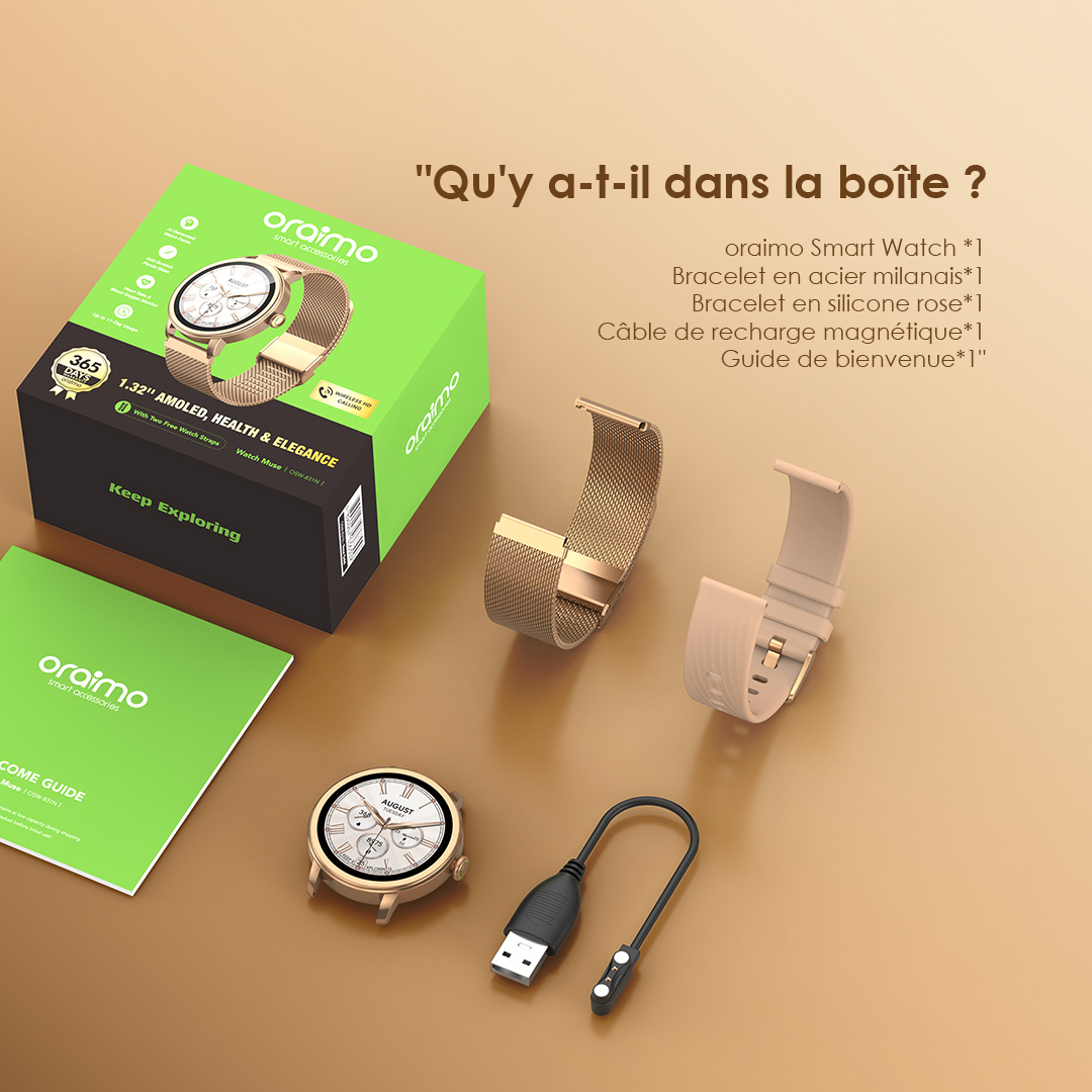 Avec les cadrans générés par IA, la Watch Muse ouvre des possibilités de design infinies. Choisissez parmi plus de 120 options vibrantes sur l'application oraimo health pour refléter votre personnalité et votre style, rendant chaque regard unique.