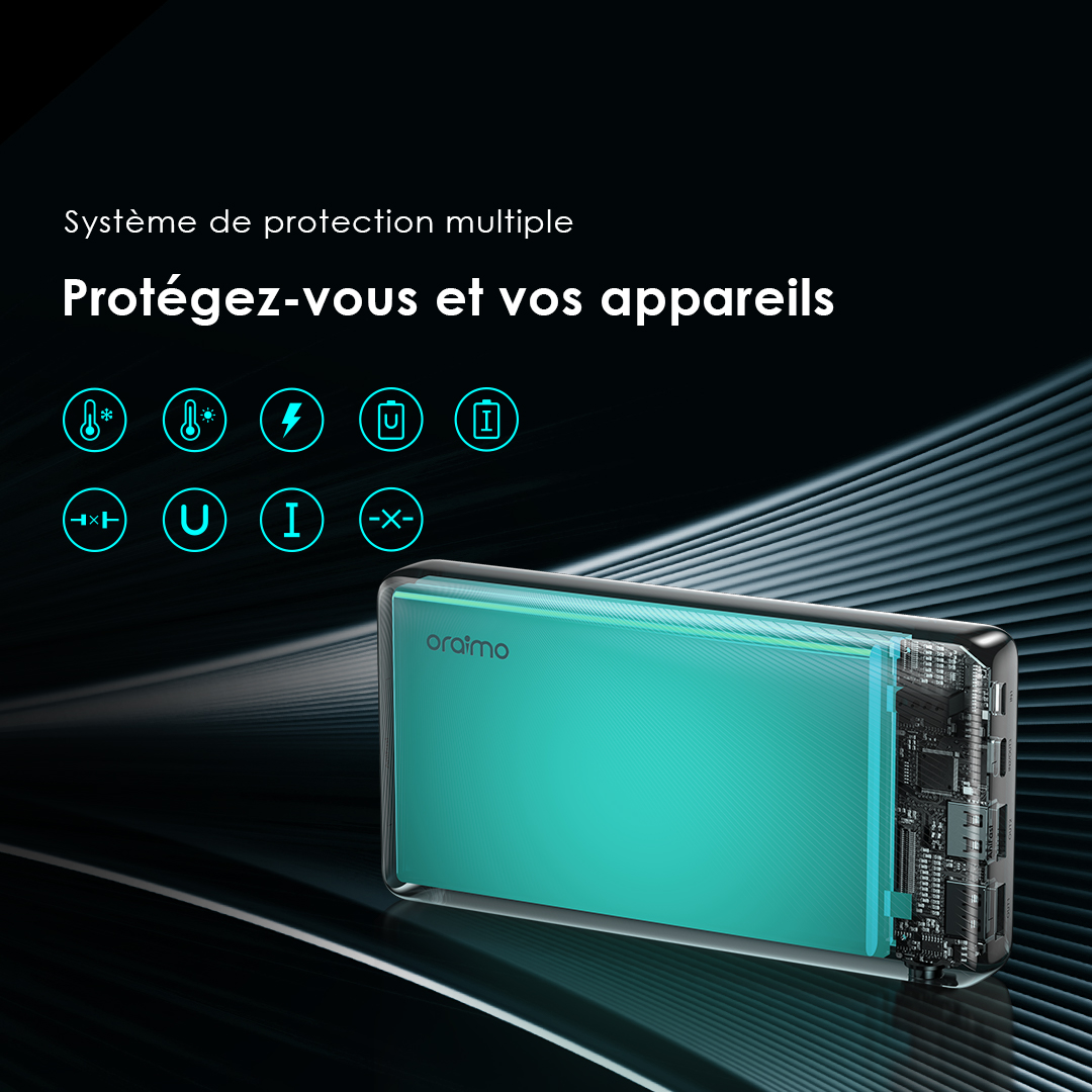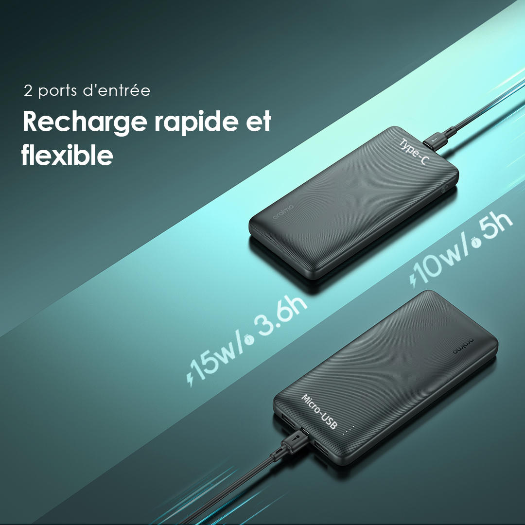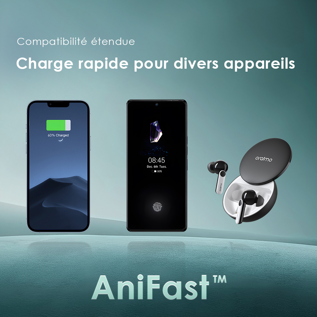 Équipée de la puce exclusive AniFast™ d’oraimo, la batterie externe identifie intelligemment le protocole de charge rapide de votre appareil pour fournir la charge la plus rapide possible.