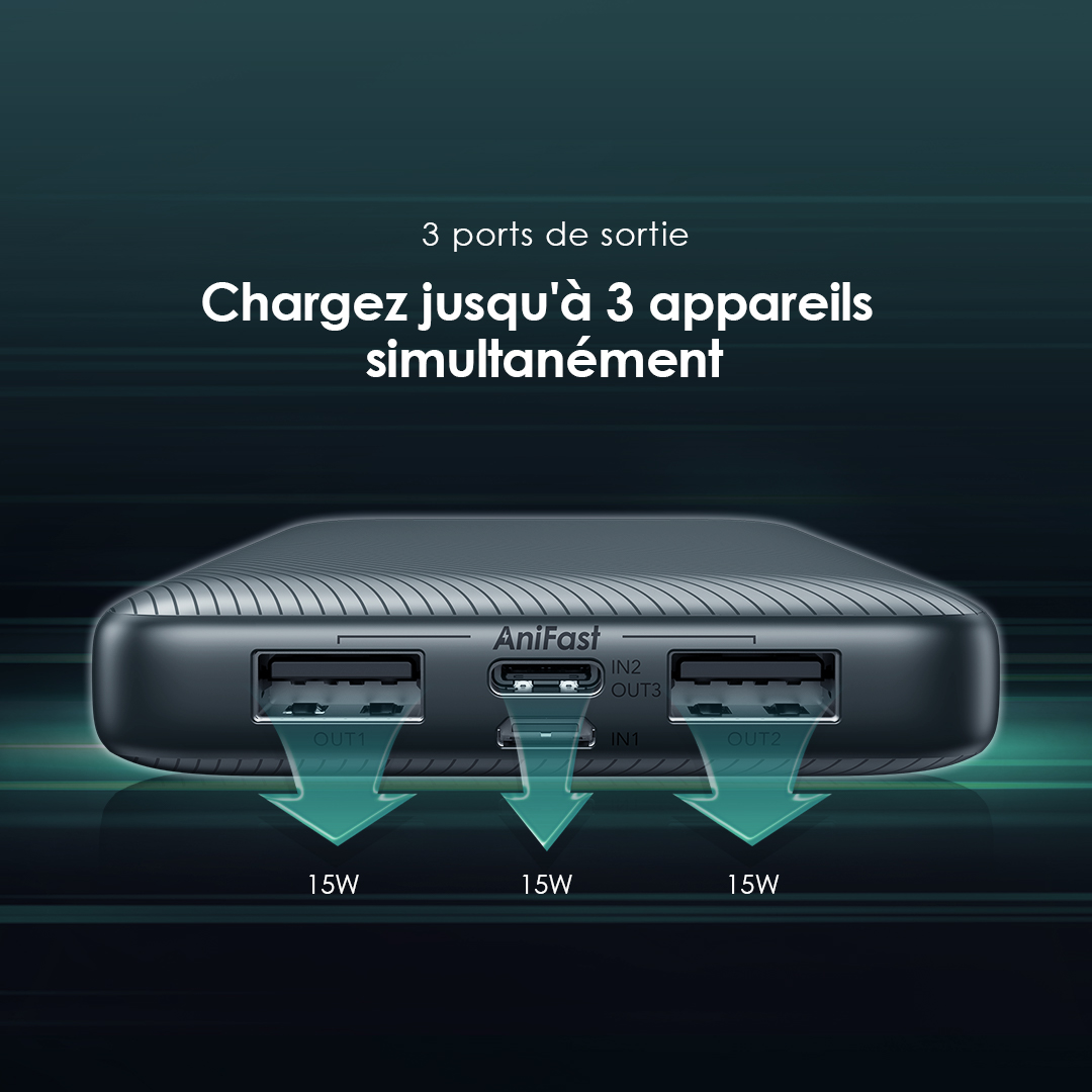 Chargez plusieurs appareils 3 SORTIES